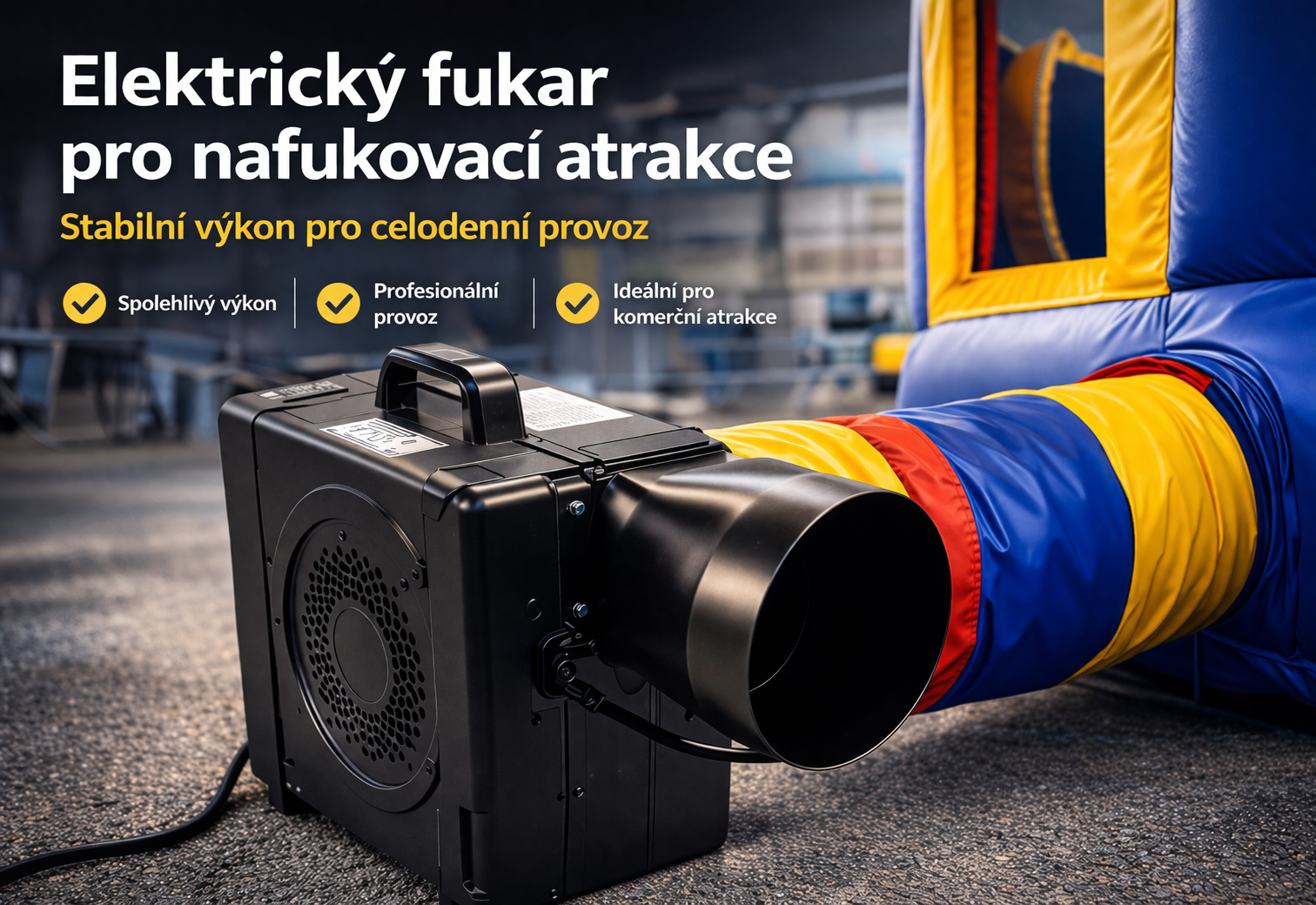 Spolehlivý provoz nafukovacích atrakcí nestojí jen na designu, ale i na technickém řešení. Kvalitní fukar jako součást dodávky ovlivňuje stabilitu, bezpečnost i dlouhodobý výkon atrakce při eventech, městských akcích a komerčním využití.